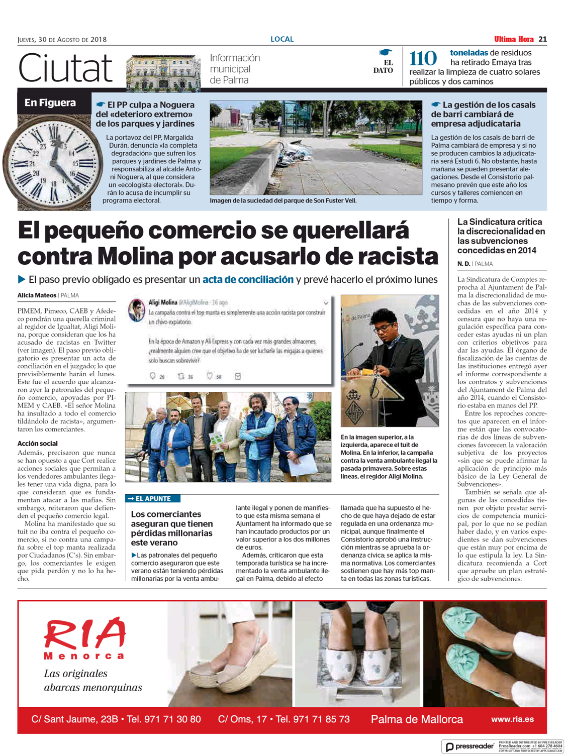 PYMEN,Pimeco,CAEB Y AFEDECO pondrán una querella criminal al regidor de Igualtat, Aligi Molina…